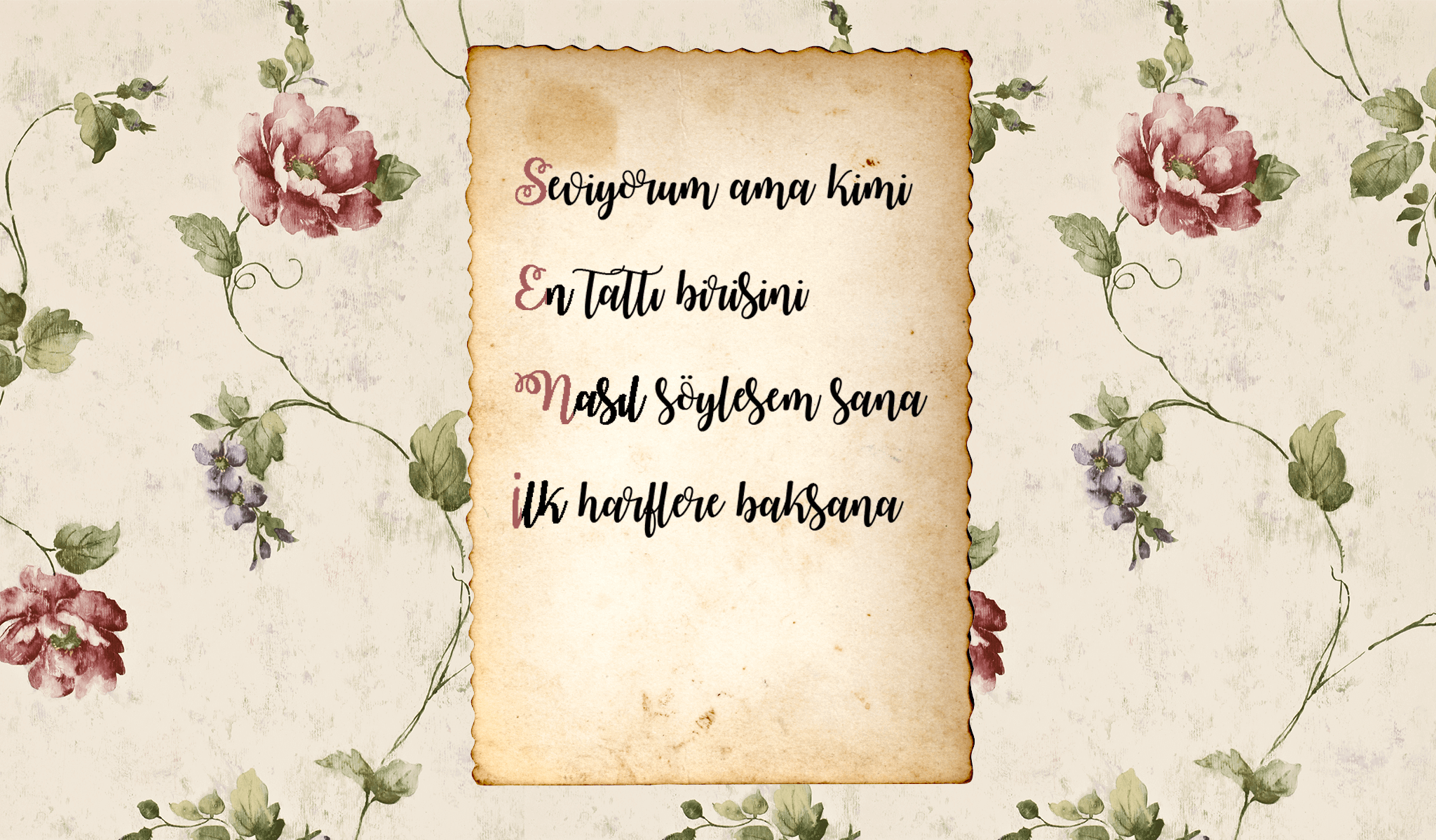 Birini önemsediğimizi göstermenin en naif yollarından biri onun için olan duygularımızı şâirane bir şekilde ifade etmek değil midir? Okul defterlerinin arkasına, kokulu kâğıtlara, arasında çiçek saklanan defterlere yazılan akrostişler, mâniler en masum duygularımızın bir yansımasıydı.